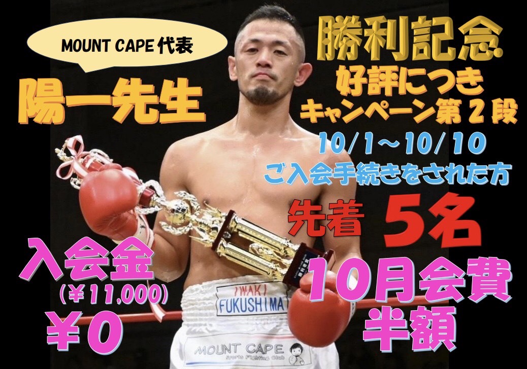 今日から10/10までの10日間だけ ・入会金0円 ・10月会費半額 の勝利記念キャンペーンを 先着5名様 限定で行います!